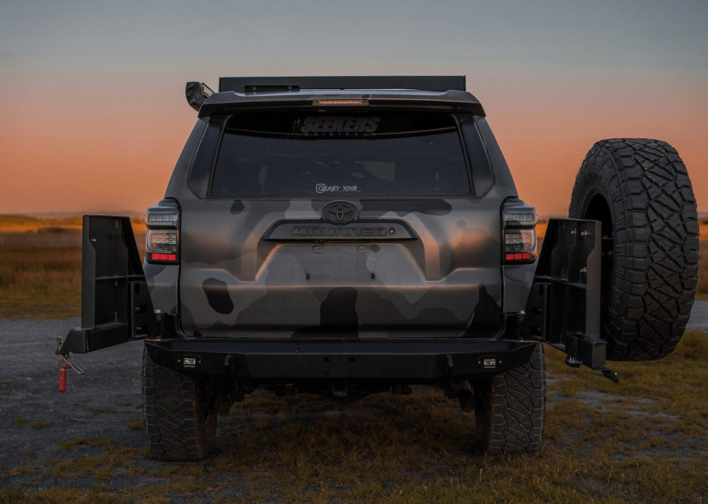 The Hi-Lite Overland Rear Bumper was built to perfectly fit 5th gen Toyota 4Runners. It features high ground clearance, one-piece steel design, lightweight aluminum dual swing-out doors, and steel mounting brackets and shackles mounts. This hybrid combination of steel and aluminum keeps the weight down, minimizes the risk of rust and corrosion, and offers all the strength and protection you’re looking for. This amazing bumper is also easily customizable, with options for adding a spare kit, auxiliary lighting, and more.