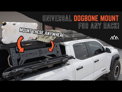 Our Universal "Dogbone" mount is an all aluminum panel that allows you to easily mount your traction boards, Rotopax, or other gear on any roof rack, bed rack, or flat surface. We have special cutouts that accept Maxtrax mounting pins and other similar traction board mounts. We also have matching cutouts to the Rotopax mounts, allowing a no drill solution to carrying extra fuel/water.