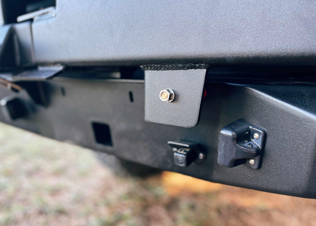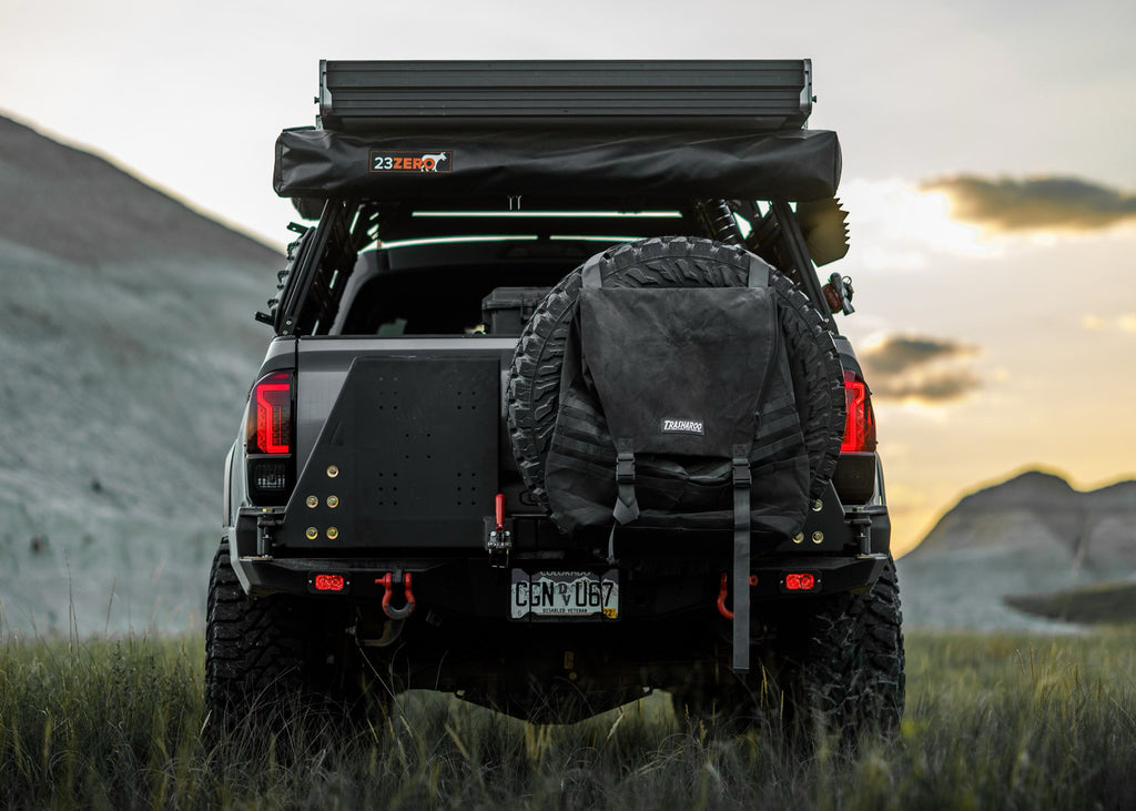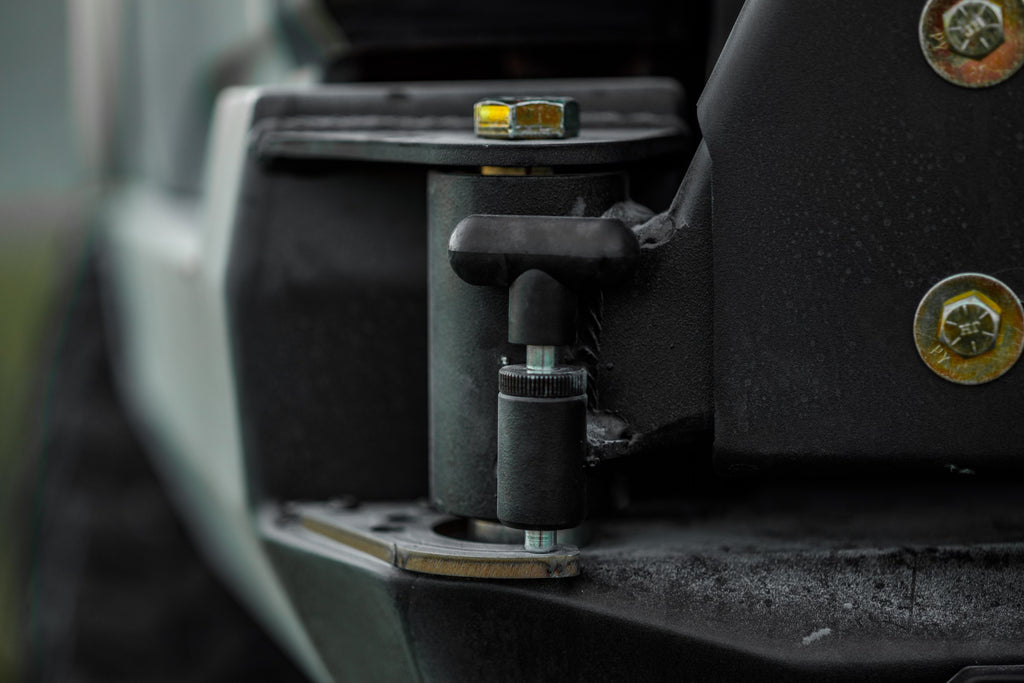 As part of our Hi-Lite series, this dual swing out fits right in because it's super high clearance and light weight. The bumper itself is made from steel while the swinging doors are made from aluminum. This keeps the weight lighter that most rear swing out systems, eliminates rust, and allows for easy drilling and configuring of the 2 rear swinging gates for accessories.