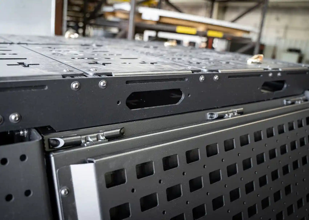 The Overland Bed Rack Storage Box for the Toyota Tacoma is the ultimate truck bed storage box. Most bed rack storage boxes on the market are made of injection molded plastic and don't hold up well over time, and they just don't look and feel premium. We think these trucks deserve a storage box that is made with premium materials, innovative features, and unbeatable functionality.