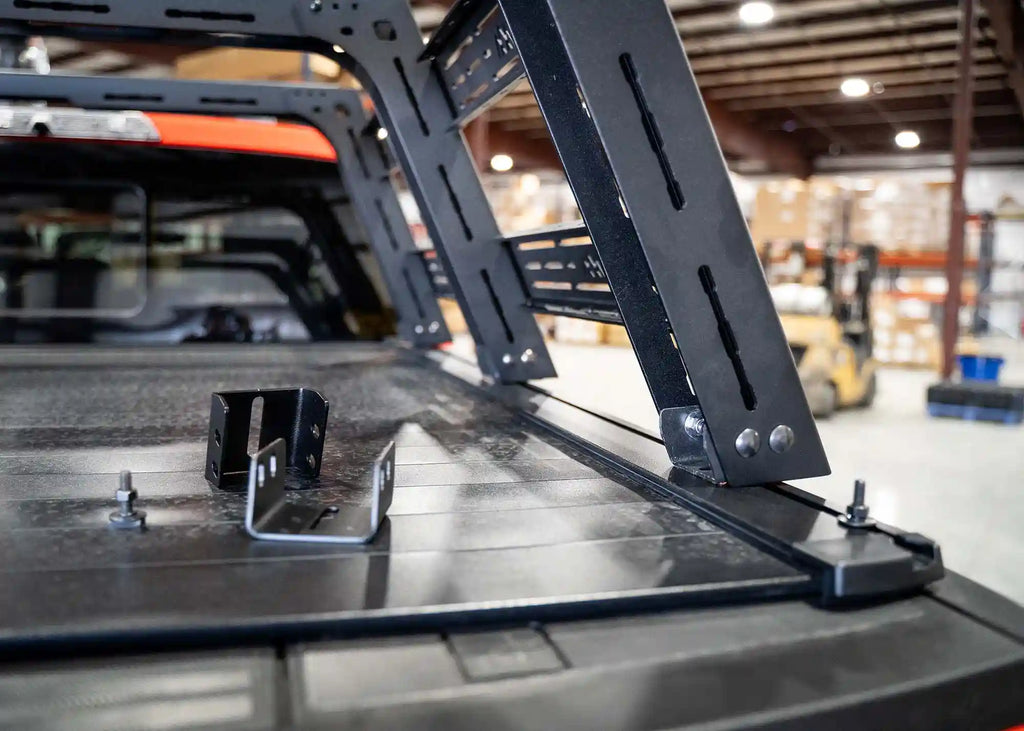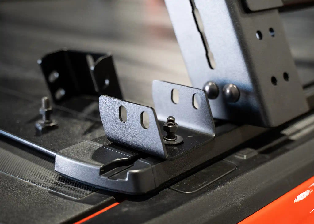If you're running a Retrax bed cover or similar retractable bed cover with t-slot rails on your truck, you will need these mounts to mount our bed rack. This is not compatible with folding bed covers. If you have a track system on top of your bed cover, these mounts have adjustable slots and will fit most applications. You simply need your bed cover to have mounting hardware sticking up from the track.