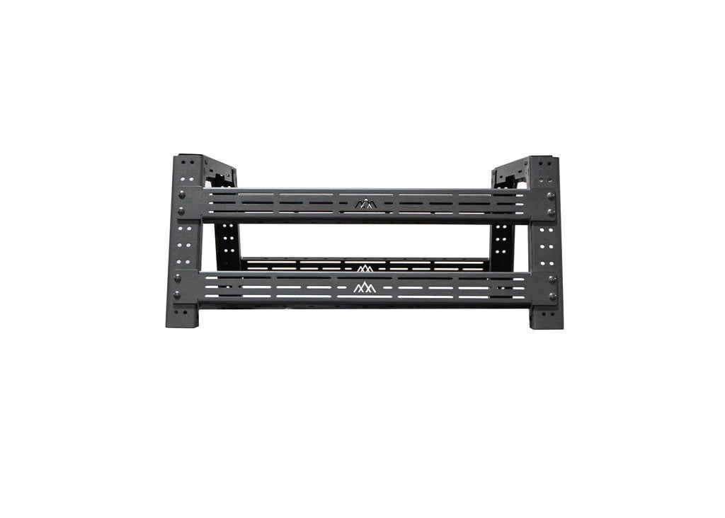 Our Toyota Tacoma bed rack gives you tons of customization and utility. Whether you're mounting a roof top tent, mountain bikes, kayaks, or other adventure gear, our modular roof rack helps you easily dial in your setup. On top of our bed rack, we have added an optional topper section that mimics the amazing features of our DRIFTR roof rack. The top of our bed rack comes with the same triple slotted extrusions, beefy 0.25" aluminum side panels, and handle cutouts as our roof rack. If paired with our DRIFTR roof rack, this bed rack creates a perfectly flat platform from the front to the back of the truck.