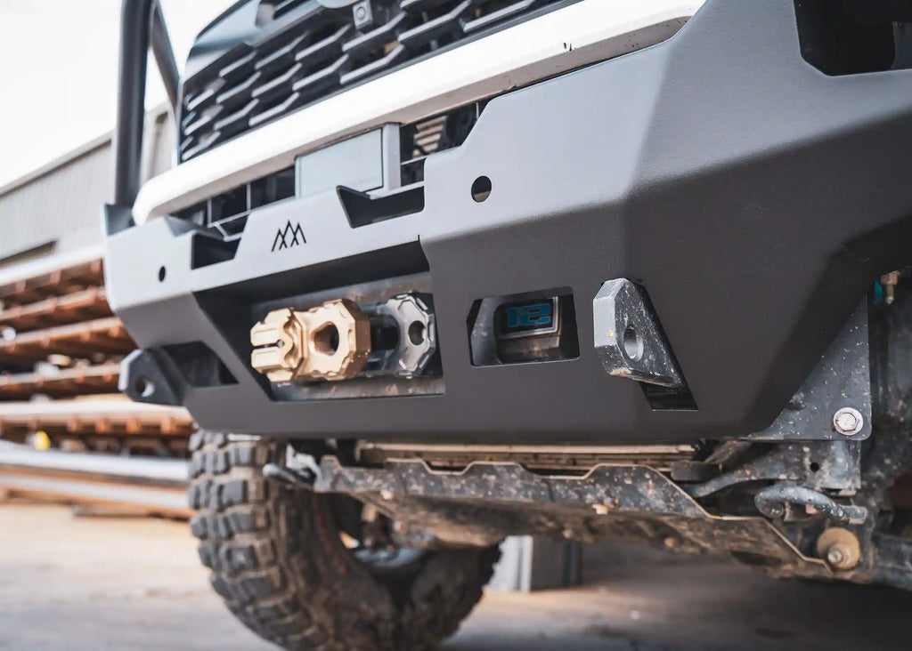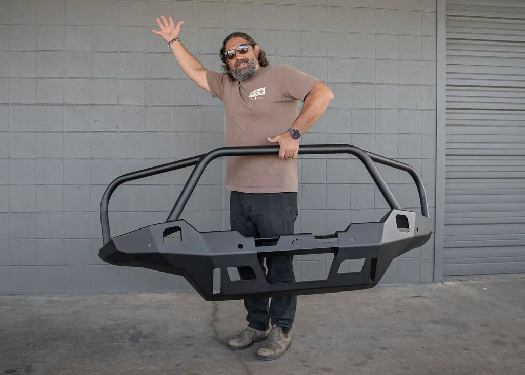 Introducing our TRUE hybrid bull bar style front winch bumper for the 2024-2025 4th gen Toyota Tacoma. Our version of a Hybrid Bumper incorporates Steel AND Aluminum, not just one or the other. The Hi-Lite gets its name from its aggressive, high-clearance design and its ultra lightweight overall construction. This bumper features a full 44lb aluminum shell and a 42lb steel winch cradle for a total weight of 86lbs (40lbs is actually removed from the OEM bumper, so you're only adding around 45lbs to the front of your truck with this bumper). We've specially designed this bumper to give you strength where you need it most while saving weight and eliminating rust everywhere else.