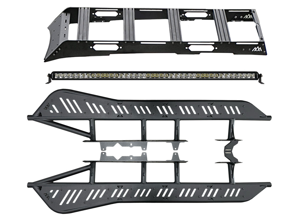This bundle includes all of our products that we specifically make for the 2nd & 3rd gen Toyota Tacoma. You will receive our Backwoods DRIFTR Roof Rack, Rock Sliders, and roof rack Lightbar.