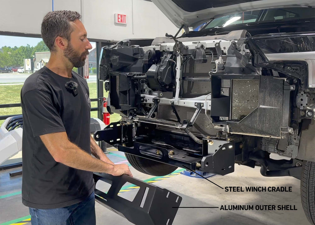 You will receive our Backwoods Hybrid front bumper, rear bumper, rock sliders, and a Warn winch.
